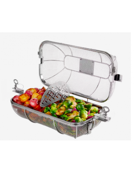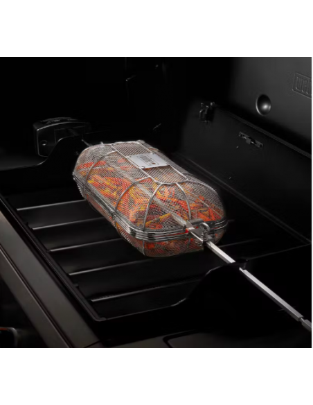 Porta la tua cucina all'aperto e prepara piatti inediti sul tuo barbecue con il WEBER CRAFTED Gourmet BBQ System. Basta agganciare il cestello per girarrosto WEBER CRAFTED allo spiedo del girarrosto sul barbecue per ottenere patatine fritte, verdure e perfino popcorn deliziosi e croccanti. Girarrosto per barbecue necessario per l'uso.