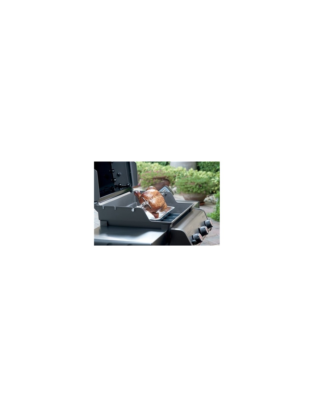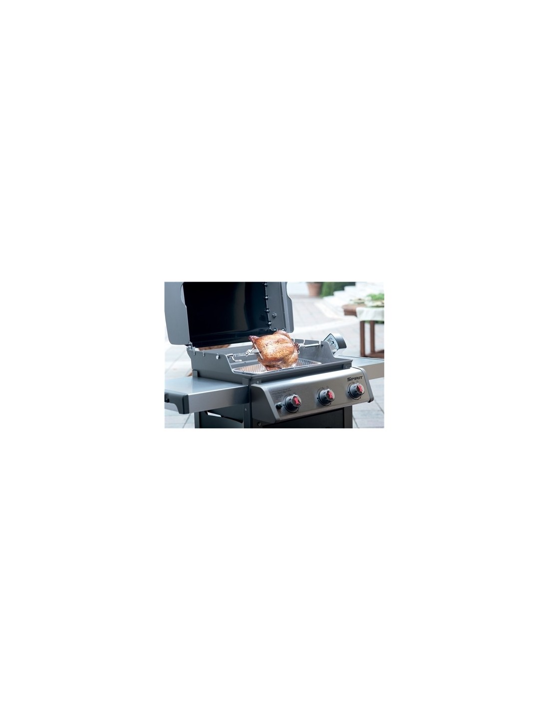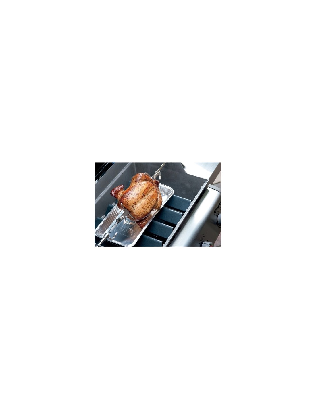 Il girarrosto Weber Original per barbecue a gas Spirit è dotato di uno spiedo da girarrosto con due forchettoni, il quale permette di cuocere un pollo intero o un grande arrosto. È alimentato da un robusto motore elettrico per assicurare una regolare rotazione per una cottura uniforme